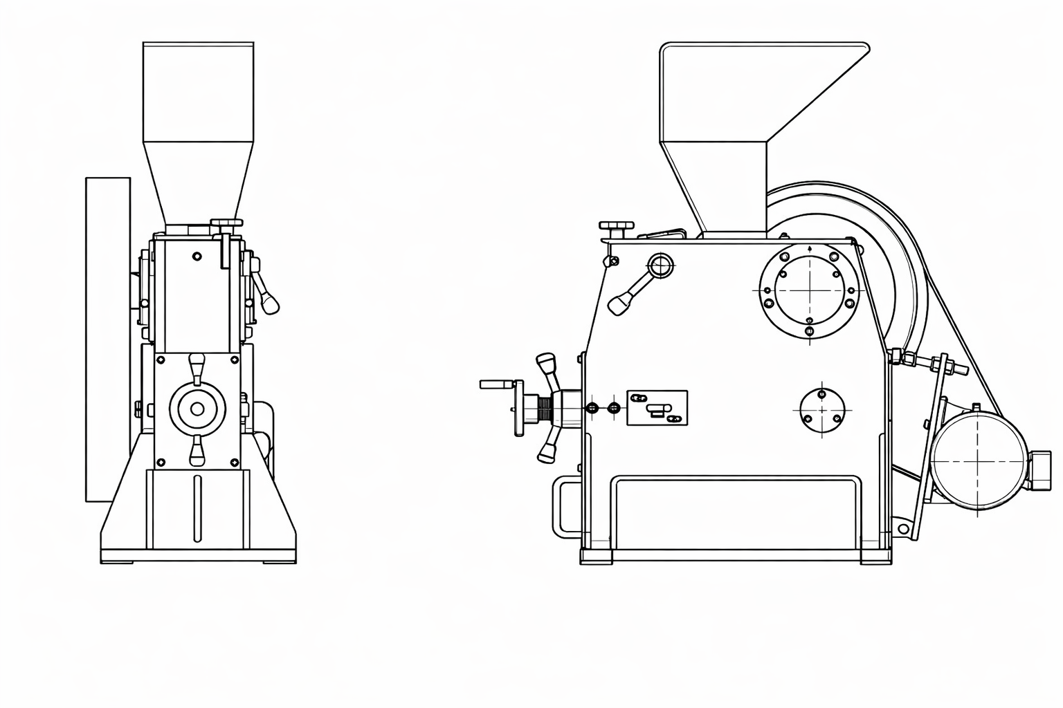 •Feed hopper and sample drawer OR Fabricated steel base for mounting on floor.
